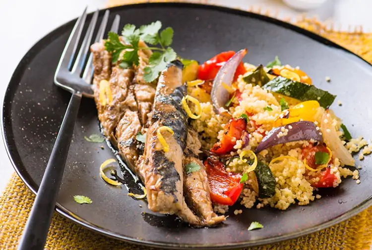 Filets de maquereau grillés aux aubergines et tomates rôties de Xiao Shu